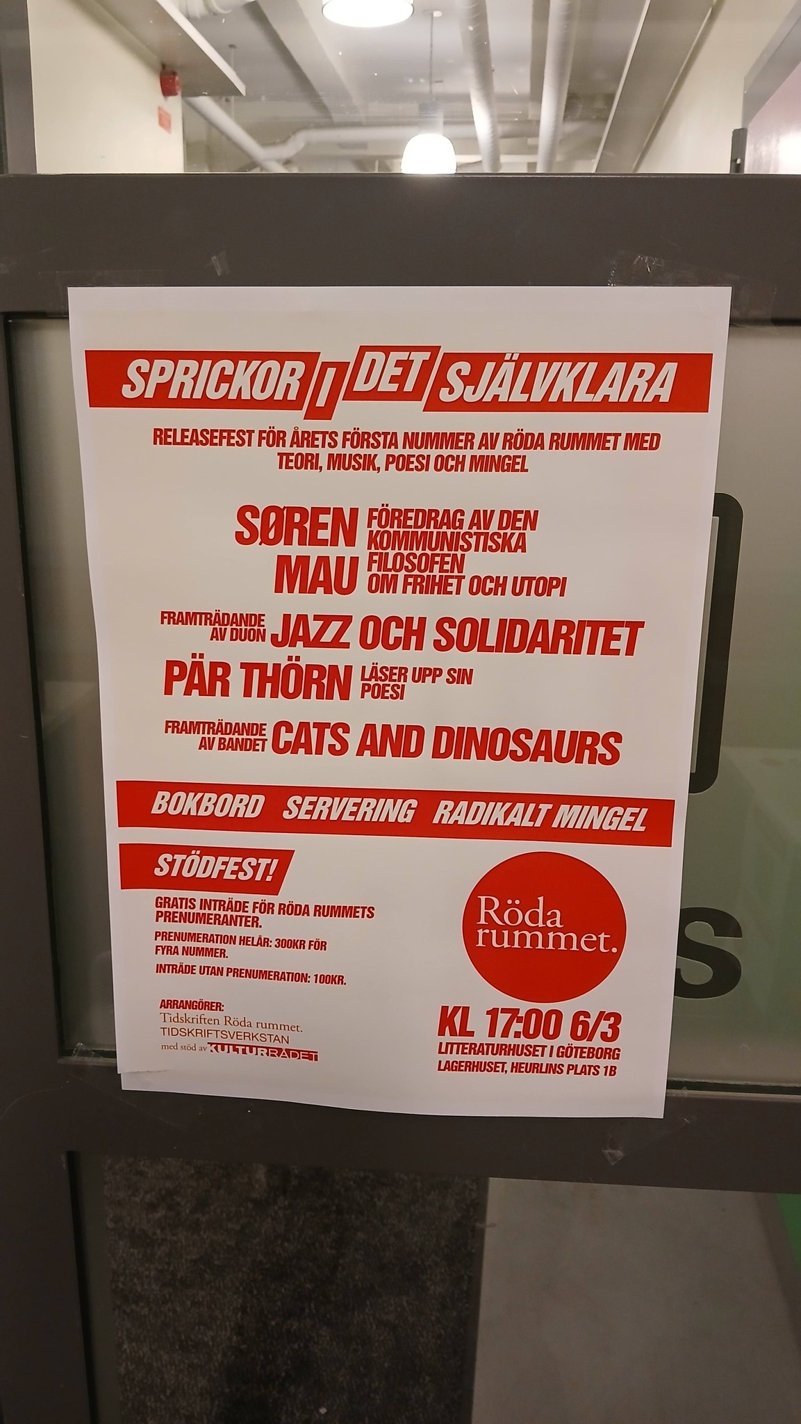 TUSEN TACK för en magisk release- och stödfest igår kväll! Tack Søren Mau, JAZZ OCH SOLIDARITET, Cats and Dinosaurs och Pär Thörn. Tack alla gäster! Pengarna vi fick in motsvarar kostnaderna för produktionen av ett helt nummer. Varmt välkomna också till cirka 30 nya prenumeranter!